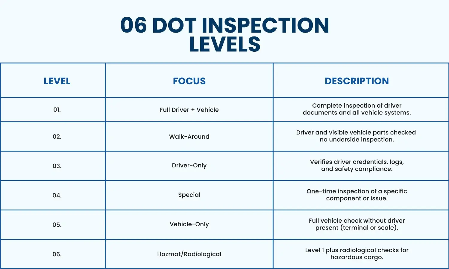 6 DOT Inspection Levels